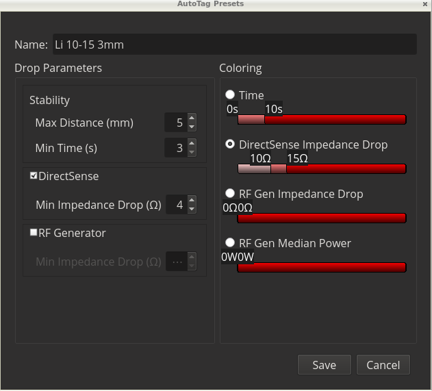 术中设置导管头端在半径5mm范围内稳定3秒,且局部阻抗LI下降4Ω及以上可自动取点