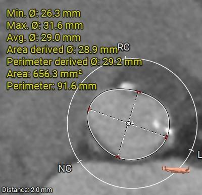 1.TYPE1二叶瓣,钙化分布不均匀,存在瓣膜下移的风险,瓣周漏可能性较大。